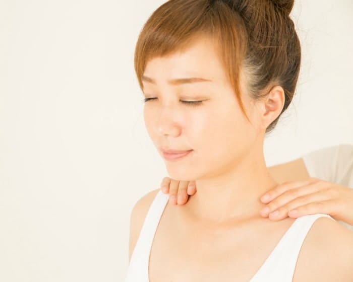 1. 耳の下に指3本を置き、軽く円を描くようにマッサージします。