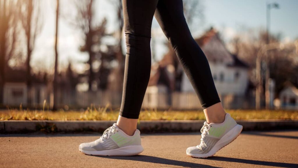- 膝を伸ばしすぎず、リズミカルに歩く